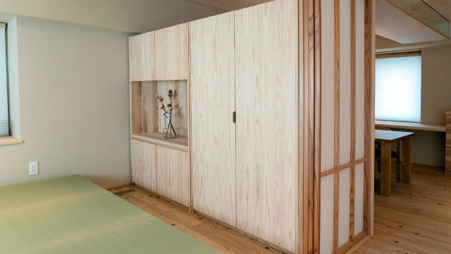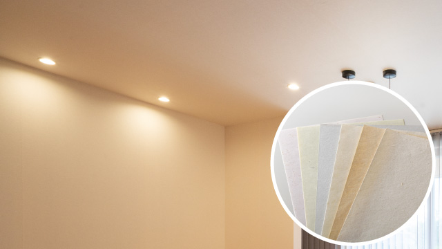 和紙は繊維の強い植物の皮を原材料に使い、調湿効果など優れた特性を持ち、意匠性にも独特の風合いが室内に落ち着きを醸し出します。